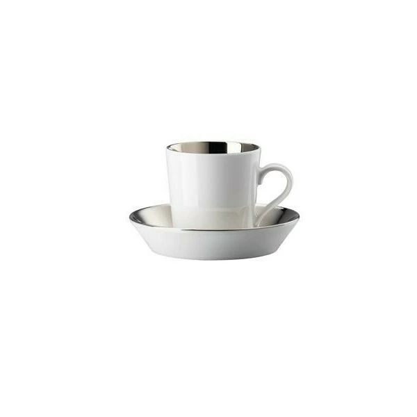 Diese hübsche Espresso-/Mokkatasse mit Untere aus der Serie Tric silber titanisiert von Arzberg überzeugt durch ihr Wechselspiel aus klarem Weiß und glänzendem Silber. Das silberne Dekor ist mit Titan gehärtet und gewährleistet eine lange Nutzungsdauer in Ihrem klassischen Ambiente.