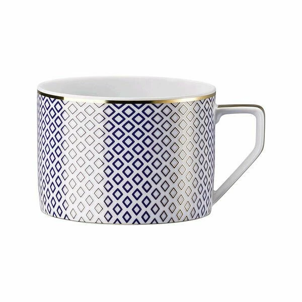 Die zylindrische Teeobertasse der Geschirrkollektion Francis Carreau Bleu von Rosenthal ist durch ihren filigranen Griff gut zu greifen und lädt zum wohlig warmen Teegenuss ein. Das unverwechselbare Porzellan besticht durch seine klassisch ruhige Wirkung und wird von strukturklar gesetzten Rauten ins richtige Licht gerückt. Akzente werden durch feine Bänder aus Gold eingebunden.