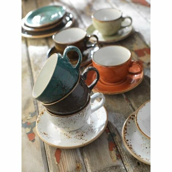 Lauter kleine Zufallseffekte, die durch den Brennvorgang in der Glasur entstehen, machen die Kollektion Craft Blue, zu der auch diese niedrige Tasse gehört, so einzigartig. Kein Teil gleicht dem anderen, lediglich die schlichte Formsprache bleibt sich treu. Die zufälligen “Special Effects” und kleinen Unebenheiten verleihen dem Vitro-Porzellan von Steelite ihren rustikalen Touch. Das Design ist inspiriert von einfacher Handwerkskunst. Die glänzende und unwahrscheinlich strapazierfähige Glasur wird dreifach von Hand aufgetragen.