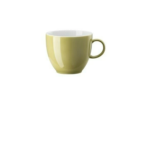 Die Kaffeeobertasse aus der Geschirrserie Sunny Day Avocado Green von Thomas besticht durch ihren ruhig schimmernden Farbton, der eine erdende Wirkung hat. So führt die Tasse während des Kaffeegenusses zu einem angenehmen Moment des Durchatmens.