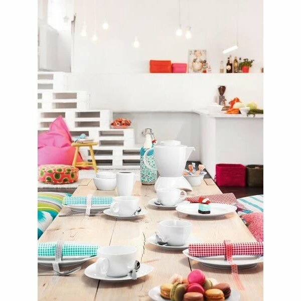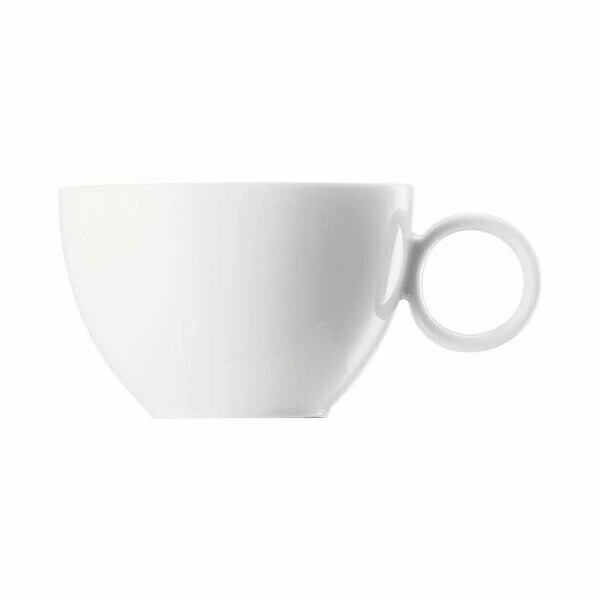Die elegante Tee-Obertasse aus der Serie Vario Pure des Herstellers Thomas ist eine ideale Ergänzung für jedes anspruchsvolle Teeservice. Die formschöne Tasse fasst 230 ml und überzeugt mit einem geometrischen Design, das sie vorzüglich mit gehobenem Porzellan und Besteck verschiedener Serien harmonieren lässt. Das Pure-Dekor wirkt dezent und hebt die Tasse doch aus der Masse anderer Modelle heraus. Es wirkt exzellent mit der schlichten weißen Farbgebung zusammen. Die Tee-Obertasse besteht aus kantenfestem, widerstandsfähigem und hitzebeständigem Hartporzellan. Sie ist spülmaschinen- und mikrowellenfest.