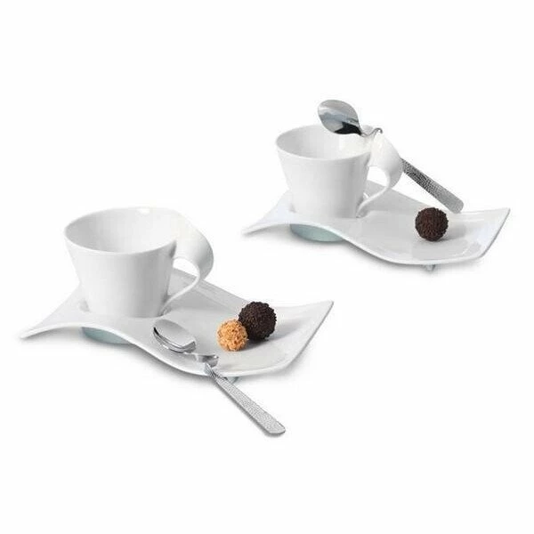 NewWave Caffe Set besteht aus je 2x : Partyplatte 22×17 cm Kombi-Untere , Henkelbecher 0,3 l , Kaffeelöffel