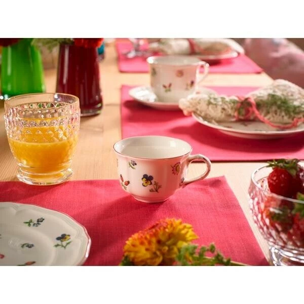 Die Kollektion Petite Fleur verleiht der Tafel ein romantisches und sommerliches Flair. Die feinen floralen Verzierungen unterstreichen die grazile Formensprache des Designs. Qualität von Villeroy & Boch seit 1748. Aromatischer Darjeeling, würziger Kräutertee oder eine süße Fruchtmischung – ganz gleich, welchen Tee Sie am liebsten trinken, in dieser charmanten Tasse schmeckt er gleich doppelt so gut. Gefertigt aus hochwertigem Premium Porcelain. Natürlich geeignet für Spülmaschine und Mikrowelle. Erleben Sie die Geschirr-Kollektion mit charmantem Blümchendekor von Villeroy & Boch.